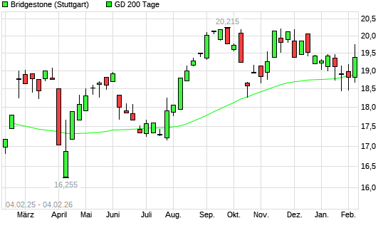 Mit dem Rücksetzer auf 18,52 EUR hat die Bridgestone-Aktie am 03.02.2026 die 200-Tage-Linie nach unten gekreuzt.