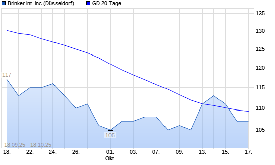 Mit dem Rücksetzer auf 108,00 EUR hat die Brinker International-Aktie am 17.10.2025 die 20-Tage-Linie nach unten gekreuzt.