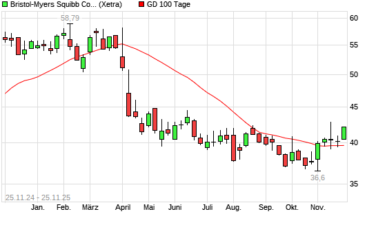Mit dem Anstieg auf 42,26 EUR hat die Bristol-Myers-Aktie am 24.11.2025 die 100-Tage-Linie nach oben gekreuzt.