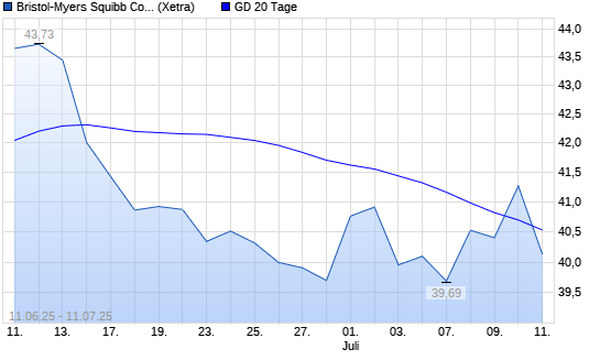 Mit dem Anstieg auf 41,40 EUR hat die Bristol-Myers-Aktie am 10.07.2025 die 20-Tage-Linie nach oben gekreuzt.