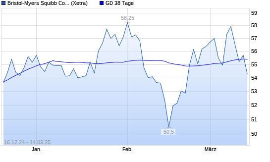 Mit dem Anstieg auf 55,63 EUR hat die Bristol-Myers-Aktie am 13.03.2025 die 38-Tage-Linie nach oben gekreuzt.