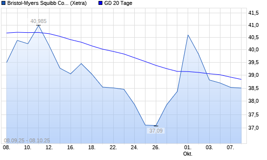 Mit dem Rücksetzer auf 38,60 EUR hat die Bristol-Myers-Aktie am 07.10.2025 die 20-Tage-Linie nach unten gekreuzt.
