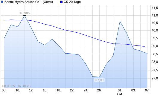 Mit dem Anstieg auf 39,05 EUR hat die Bristol-Myers-Aktie am 06.10.2025 die 20-Tage-Linie nach oben gekreuzt.Die Bristol-Myers-Aktie befindet sich seit dem 07.04.2025 im langfristigen Abwärtstrend ...weiterlesen