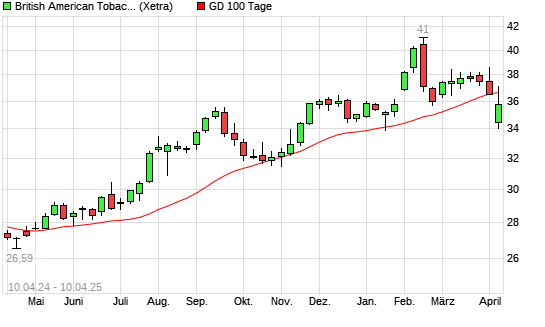Mit dem Anstieg auf 36,85 EUR hat die British American Tobacco-Aktie am 09.04.2025 die 100-Tage-Linie nach oben gekreuzt.