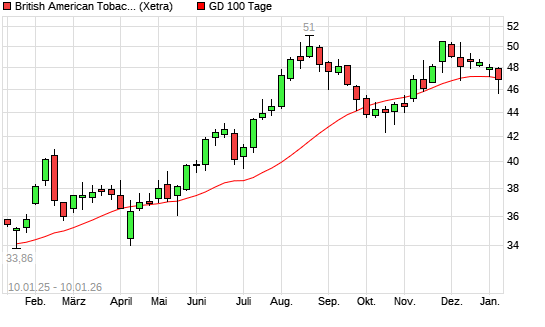 Mit dem Anstieg auf 47,25 EUR hat die British American Tobacco-Aktie am 09.01.2026 die 100-Tage-Linie nach oben gekreuzt.