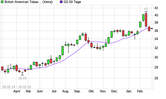 Mit dem Anstieg auf 36,46 EUR hat die British American Tobacco-Aktie am 24.02.2025 die 50-Tage-Linie nach oben gekreuzt.
