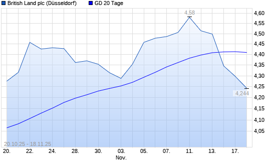 Mit dem Rücksetzer auf 4,35 EUR hat die British Land-Aktie am 17.11.2025 die 20-Tage-Linie nach unten gekreuzt.