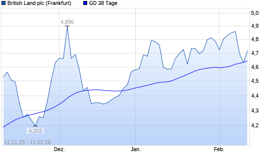 Mit dem Rücksetzer auf 4,63 EUR hat die British Land-Aktie am 10.02.2026 die 38-Tage-Linie nach unten gekreuzt.