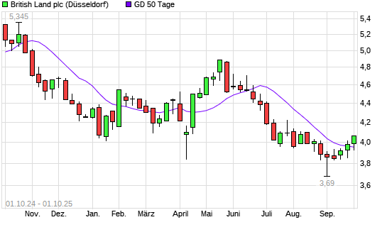 Mit dem Rücksetzer auf 3,95 EUR hat die British Land-Aktie am 30.09.2025 die 50-Tage-Linie nach unten gekreuzt.