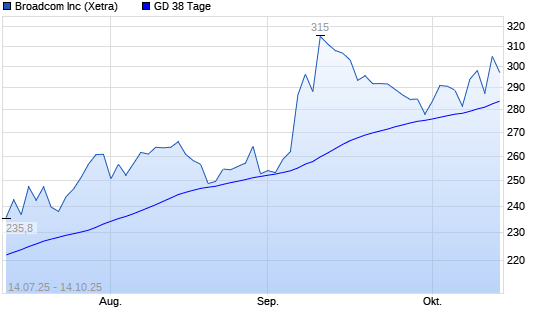 Mit dem Anstieg auf 309,50 EUR hat die Broadcom-Aktie am 13.10.2025 die 38-Tage-Linie nach oben gekreuzt.