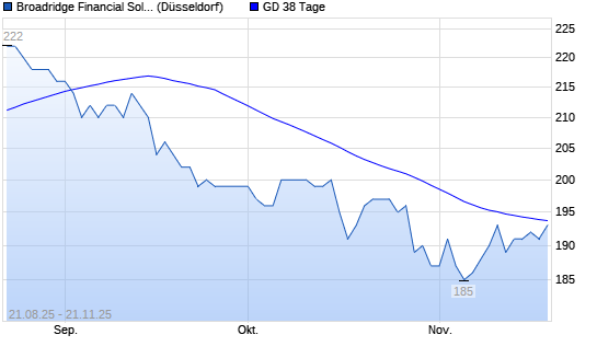Mit dem Anstieg auf 196,00 EUR hat die Broadridge Financial-Aktie am 20.11.2025 die 38-Tage-Linie nach oben gekreuzt.