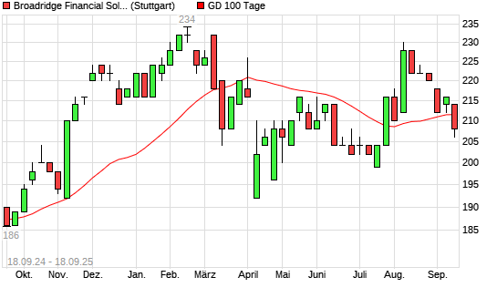 Mit dem Rücksetzer auf 206,00 EUR hat die Broadridge Financial-Aktie am 17.09.2025 die 100-Tage-Linie nach unten gekreuzt.