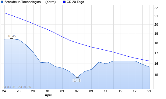 Mit dem Rücksetzer auf 16,05 EUR hat die Brockhaus Technologies-Aktie am 22.04.2025 die 20-Tage-Linie nach unten gekreuzt.