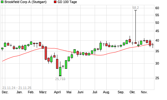 Mit dem Anstieg auf 38,50 EUR hat die Brookfield Asset Management-Aktie am 20.11.2025 die 100-Tage-Linie nach oben gekreuzt.