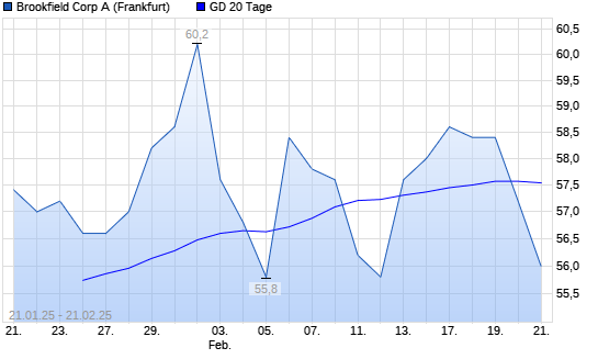 Mit dem Rücksetzer auf 57,20 EUR hat die Brookfield Asset Management-Aktie am 20.02.2025 die 20-Tage-Linie nach unten gekreuzt.