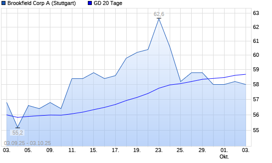 Mit dem Rücksetzer auf 57,80 EUR hat die Brookfield Asset Management-Aktie am 02.10.2025 die 20-Tage-Linie nach unten gekreuzt.