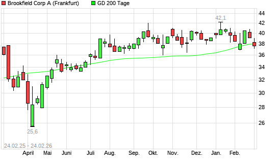 Mit dem Rücksetzer auf 37,20 EUR hat die Brookfield Asset Management-Aktie am 23.02.2026 die 200-Tage-Linie nach unten gekreuzt.