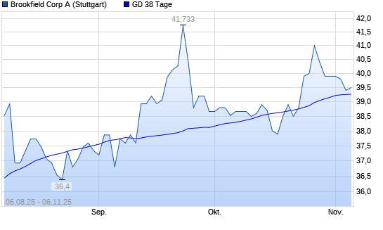Mit dem Rücksetzer auf 39,30 EUR hat die Brookfield Asset Management-Aktie am 05.11.2025 die 38-Tage-Linie nach unten gekreuzt.