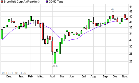 Mit dem Rücksetzer auf 38,70 EUR hat die Brookfield Asset Management-Aktie am 07.11.2025 die 50-Tage-Linie nach unten gekreuzt.