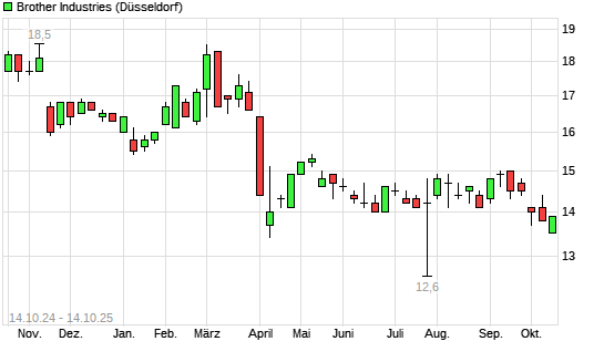 Mit dem Rücksetzer auf 13,60 EUR hat die Brother Industries-Aktie (ISIN JP3830000000) am 13.10.2025 ein neues 12-Monats-Tief erreicht und damit den Kurs vom 07.04.2025 eingestellt.