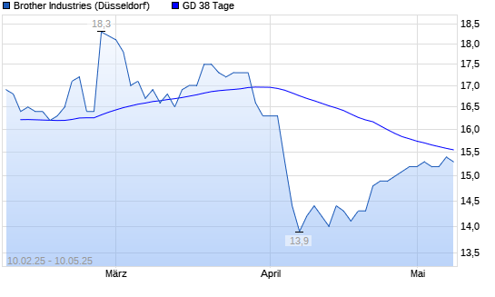 Mit dem Anstieg auf 15,50 EUR hat die Brother Industries-Aktie am 09.05.2025 die 38-Tage-Linie nach oben gekreuzt.