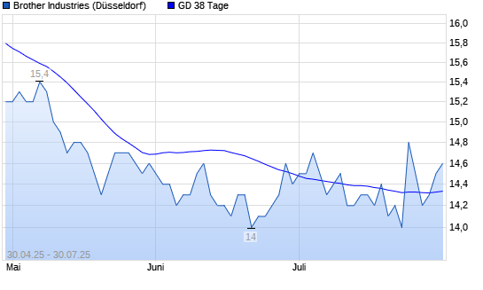 Mit dem Anstieg auf 14,50 EUR hat die Brother Industries-Aktie am 29.07.2025 die 38-Tage-Linie nach oben gekreuzt.