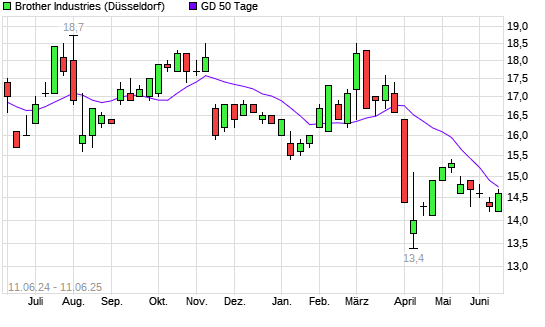 Mit dem Anstieg auf 15,00 EUR hat die Brother Industries-Aktie am 10.06.2025 die 50-Tage-Linie nach oben gekreuzt.