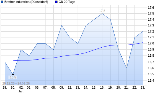Mit dem Rücksetzer auf 17,10 EUR hat die Brother Industries-Aktie am 23.01.2026 die 20-Tage-Linie nach unten gekreuzt.