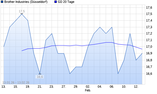 Mit dem Rücksetzer auf 17,10 EUR hat die Brother Industries-Aktie am 12.02.2026 die 20-Tage-Linie nach unten gekreuzt.