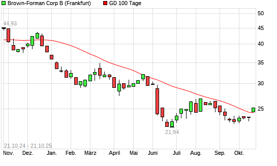 Mit dem Anstieg auf 25,00 EUR hat die Brown-Forman B-Aktie am 20.10.2025 die 100-Tage-Linie nach oben gekreuzt.