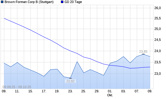 Mit dem Anstieg auf 23,66 EUR hat die Brown-Forman B-Aktie am 08.10.2025 die 20-Tage-Linie nach oben gekreuzt.