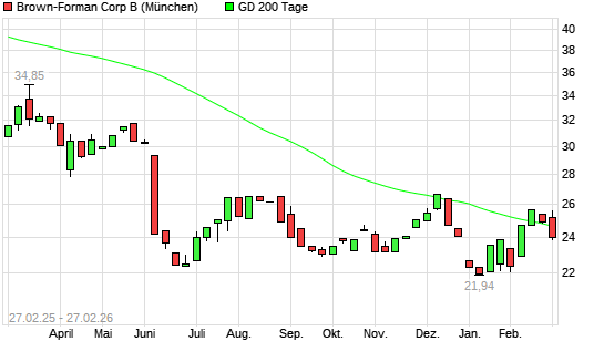 Mit dem Anstieg auf 24,37 EUR hat die Brown-Forman B-Aktie am 26.02.2026 die 200-Tage-Linie nach oben gekreuzt.