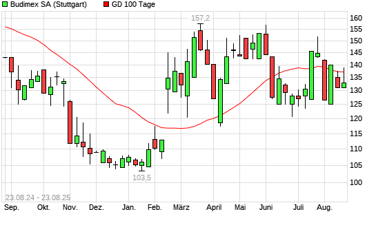Mit dem Anstieg auf 140,00 EUR hat die Budimex-Aktie am 22.08.2025 die 100-Tage-Linie nach oben gekreuzt.