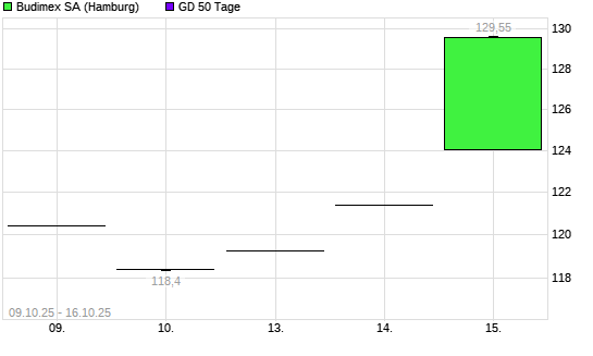Mit dem Anstieg auf 128,00 EUR hat die Budimex-Aktie am 15.10.2025 die 50-Tage-Linie nach oben gekreuzt.