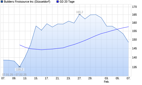 Mit dem Rücksetzer auf 155,20 EUR hat die Builders Firstsource-Aktie am 06.02.2025 die 20-Tage-Linie nach unten gekreuzt.