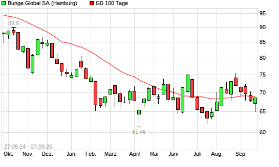 Mit dem Anstieg auf 69,44 EUR hat die Bunge-Aktie am 26.09.2025 die 100-Tage-Linie nach oben gekreuzt.