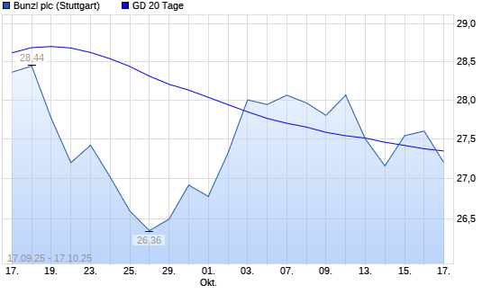 Mit dem Anstieg auf 27,82 EUR hat die Bunzl-Aktie am 16.10.2025 die 20-Tage-Linie nach oben gekreuzt.