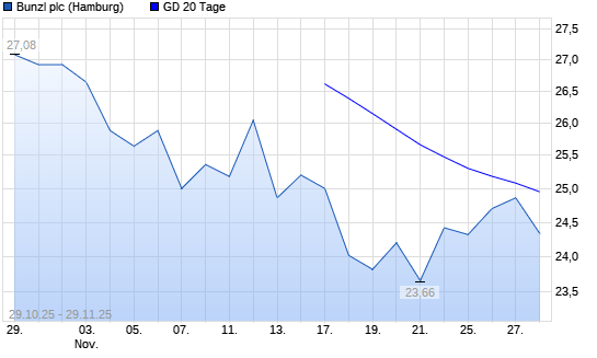 Mit dem Anstieg auf 25,10 EUR hat die Bunzl-Aktie am 28.11.2025 die 20-Tage-Linie nach oben gekreuzt.