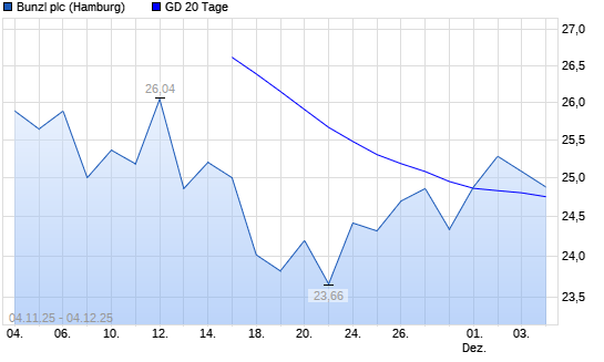 Mit dem Rücksetzer auf 24,74 EUR hat die Bunzl-Aktie am 03.12.2025 die 20-Tage-Linie nach unten gekreuzt.