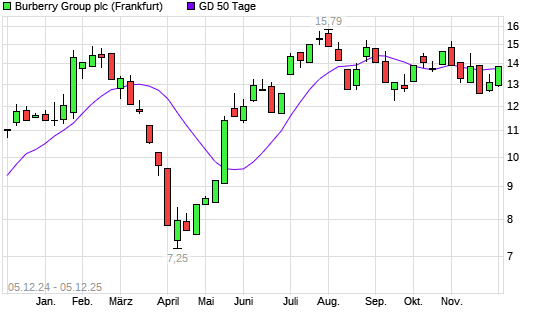 Mit dem Anstieg auf 13,86 EUR hat die Burberry Group-Aktie am 04.12.2025 die 50-Tage-Linie nach oben gekreuzt.