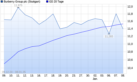 Mit dem Rücksetzer auf 11,60 EUR hat die Burberry Group-Aktie am 07.01.2025 die 20-Tage-Linie nach unten gekreuzt.
