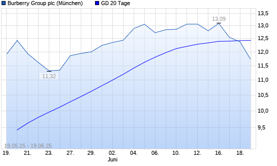 Mit dem Rücksetzer auf 12,38 EUR hat die Burberry Group-Aktie am 18.06.2025 die 20-Tage-Linie nach unten gekreuzt.
