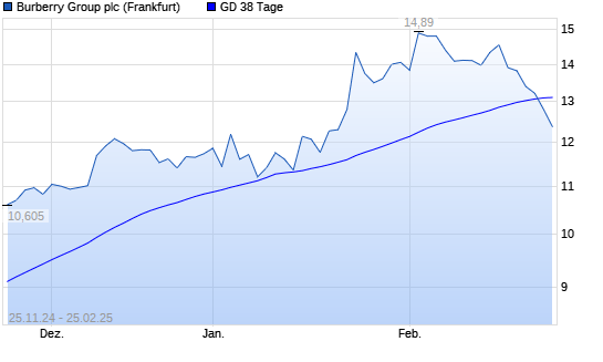 Mit dem Rücksetzer auf 12,80 EUR hat die Burberry Group-Aktie am 24.02.2025 die 38-Tage-Linie nach unten gekreuzt.