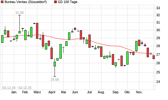Mit dem Rücksetzer auf 26,68 EUR hat die Bureau Veritas-Aktie am 02.12.2025 die 100-Tage-Linie nach unten gekreuzt.