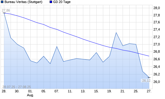 Mit dem Rücksetzer auf 26,40 EUR hat die Bureau Veritas-Aktie am 26.08.2025 die 20-Tage-Linie nach unten gekreuzt.