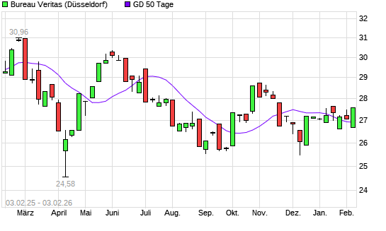 Mit dem Rücksetzer auf 26,64 EUR hat die Bureau Veritas-Aktie am 02.02.2026 die 50-Tage-Linie nach unten gekreuzt.
