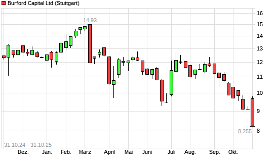 Mit dem Rücksetzer auf 8,39 EUR hat die Burford Capital Limited-Aktie (ISIN GG00BMGYLN96) am 30.10.2025 ein neues 12-Monats-Tief erreicht und damit den Kurs vom 20.10.2025 eingestellt.