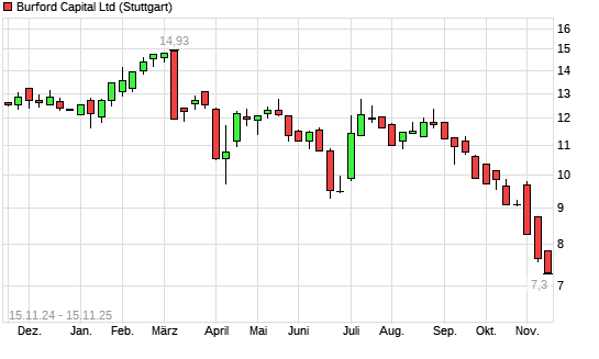 Mit dem Rücksetzer auf 7,31 EUR hat die Burford Capital Limited-Aktie (ISIN GG00BMGYLN96) am 14.11.2025 ein neues 12-Monats-Tief erreicht und damit den Kurs vom 11.11.2025 eingestellt.