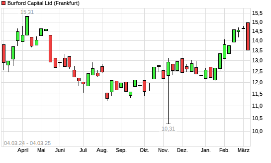 Mit dem Anstieg auf 14,79 EUR hat die Burford Capital Limited-Aktie (ISIN GG00BMGYLN96) am 03.03.2025 ein neues 6-Monats-Hoch erreicht und damit den Kurs vom 26.02.2025 eingestellt.