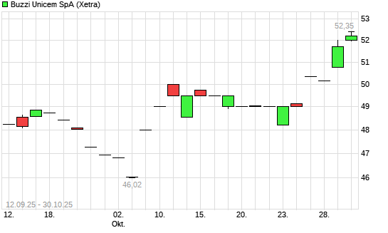 Mit dem Anstieg auf 52,20 EUR hat die Buzzi Unicem-Aktie (ISIN IT0001347308) am 03.11.2025 ein neues 6-Monats-Hoch erreicht und damit den Kurs vom 30.10.2025 eingestellt.